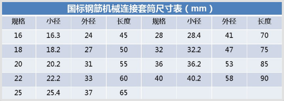 - 1、采用45號(hào)優(yōu)質(zhì)碳素結(jié)構(gòu)鋼材的鋼筋套筒,設(shè)計(jì)合理,工藝先進(jìn),尺寸精度高,連接質(zhì)量可靠。 2、各規(guī)格鋼筋套筒的基本參數(shù),全部按照HRB400級(jí)鋼筋的強(qiáng)度要求進(jìn)行結(jié)構(gòu)設(shè)計(jì),對(duì)HRB335、HRB400級(jí)鋼盤均可適用。 3、性能指標(biāo)經(jīng)“國(guó)家建筑工程質(zhì)量監(jiān)督檢驗(yàn)中心”檢測(cè),均達(dá)JG/T 163-2013中“I”級(jí)接頭的要求。